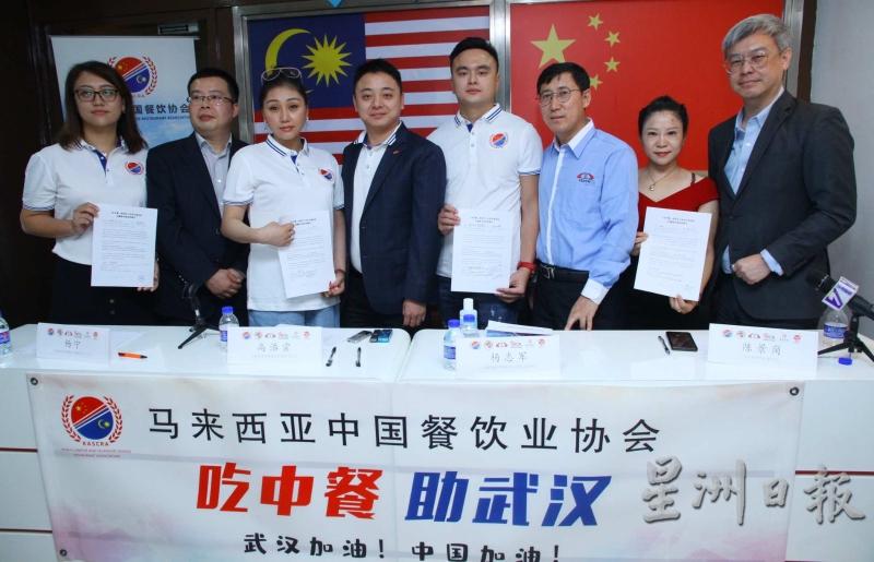 总财政杨志军(右三)代表总商会支持“吃中餐助武汉”活动