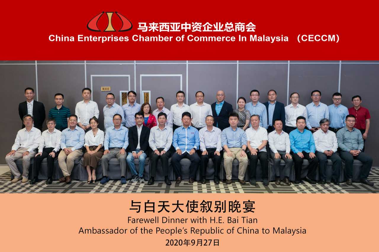 9月27日,马来西亚中资企业总商会为即将离任的白天大使举行叙别晚宴,感谢白大使的指导及表达深深的不舍之情。
